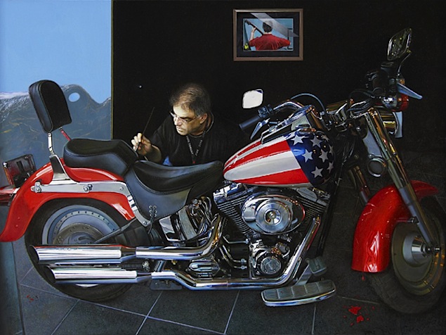 △ (L.)《motoportrait》Artist: Gilles Paul Esnault, 75x100cm, oil on pannel.